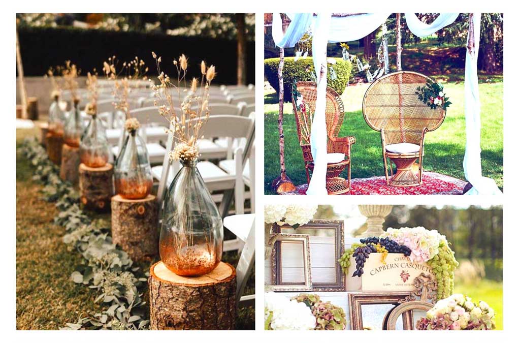 Avec un brin d’imagination et une dose de créativité, il est assez simple de composer un décor champêtre naturel et charmant. Bien entendu, on va se focaliser sur les végétaux (paille, branches d’arbres, fleurs…) et sur les objets en bois (banc, roue de charrette, escabeau, coffre de rangement…). En ajoutant à cela quelques accessoires comme des arrosoirs anciens ou des tissus en lin, vous allez créer une déco intemporelle et esthétique.